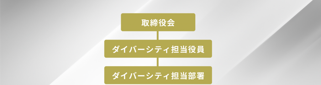 取締役会によって選任されたダイバーシティ担当執行役による管轄のもと、当社機能組織としてダイバーシティ担当部署を設置します。ダイバーシティ担当部署は、活動方針の立案や、会社全体への活動方針等の浸透、活動の推進状況をモニタリングするとともに、各種報告書の情報発信などの対外的なコミュニケーションを行います。さらに情報開示以外にもステークホルダーとの対話を実施し、外部より受けたさまざまな意見や活動を通じて特定された課題を担当執行役に報告するとともに、経営層と関連部署(人事、管理、品質、調達、設計、製造、営業など)にフィードバックします。これらに基づき対応方針を策定するなど、経営施策に適宜反映します。ダイバーシティ担当部署は、反映された方針や活動を展開していくことによって活動を推進してまいります。